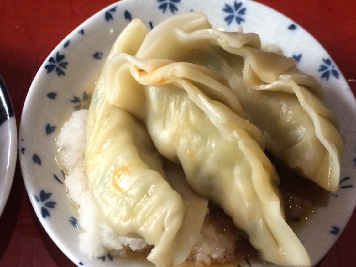 餃子の下に、おろし大根が敷いてあります。